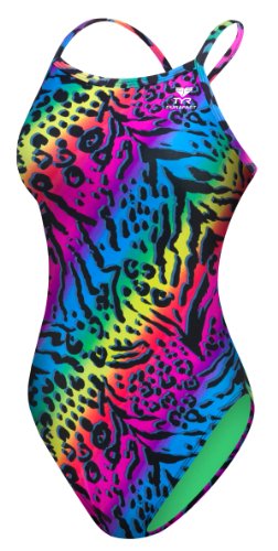 TYR Women's The Wild Crossfit Swimsuit, Rainbow, 28 The Wild Crossfit combines thin straps for minimal tan lines and a medium to high leg line for athletic flare. With a bright, rainbow animal ...